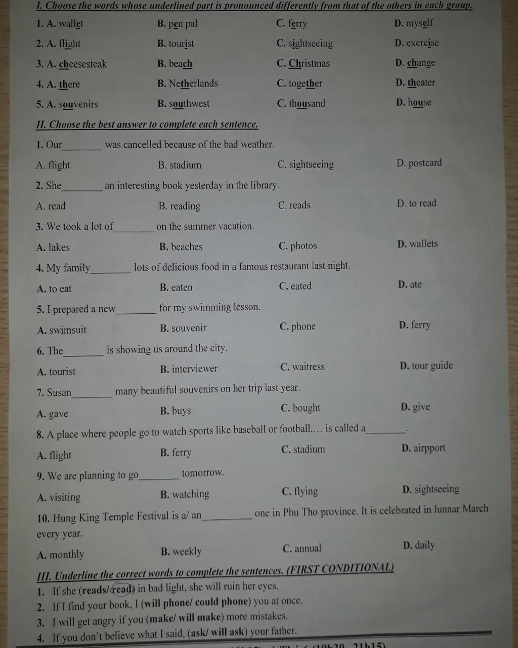 flight (n) chuyến bay → bị hủy bởi vì thời tiết xấu