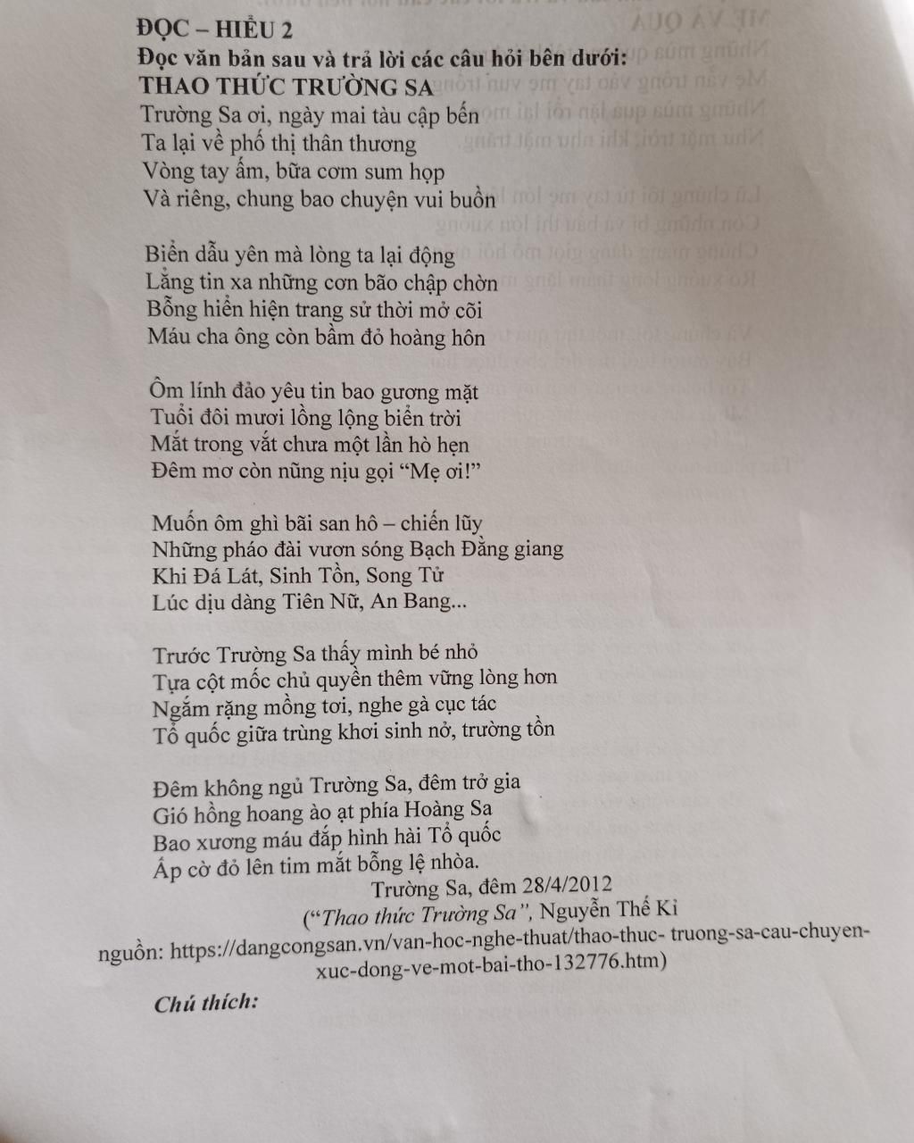 D. Đoạn thơ thể hiện sự xúc động và lòng kính phục sâu sắc của tác giả trước Trường Sa - biểu tượng thiêng liêng của chủ quyền dân tộc. Hình ảnh người lính bên “cột mốc chủ quyền” làm nổi bật vai trò của Trường Sa như một phần máu thịt thiêng liêng của đất nước. Những chi tiết gần gũi như “rặng mồng tơi”, “gà cục tác” gợi lên một cuộc sống đời thường, yên bình giữa biển khơi qua đó cho ta thấy Trường Sa không chỉ là tuyến đầu phòng vệ mà còn là nơi sinh sôi, gắn bó mật thiết với nhân dân. Tổ quốc hiện hữu sống động và bền vững giữa trùng khơi chính nhờ vào những con người âm thầm hy sinh ở nơi ấy.