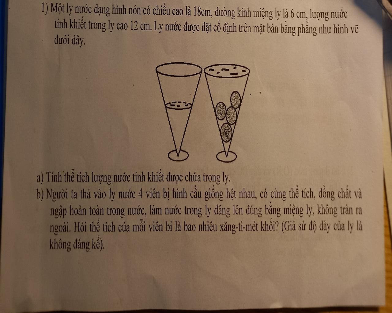 b.Gọi thể tích mỗi viên bi là $x\: cm^3, (x>0)$