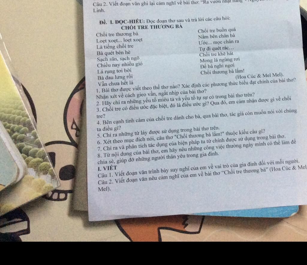 Giải giúp mik với ạ, chỉ cần giải phần đọc hiểu bài " chổi tre thương bà "