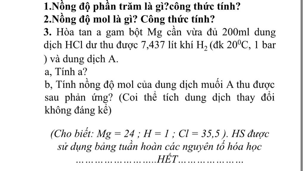 2 ] nồng độ mol là nồng độ chất mol của 1 số dung dịch là số mol chất tan có trong 1lits dung dịch
