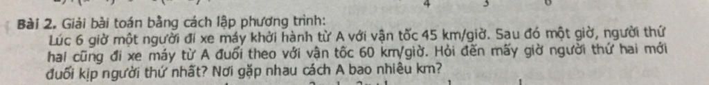 Gọi `x` là thời gian từ khi người thứ hai xuất phát đến khi đuổi kịp người thứ nhất `(x>0)` (giiwf)