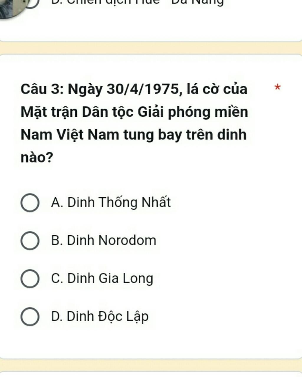 Đáp án : `D`. Dinh Độc Lập.
