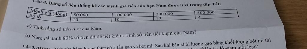 `(50000xx10)+(100000xx10)+(200000xx10)+(500000xx2)=4500000(` đồng `)`