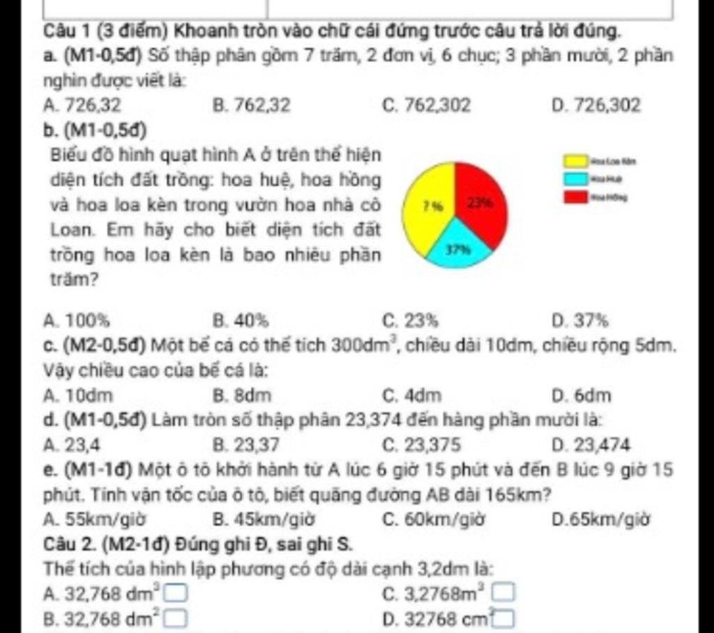 Câu 2. Đúng ghi Đ, sai ghi S.