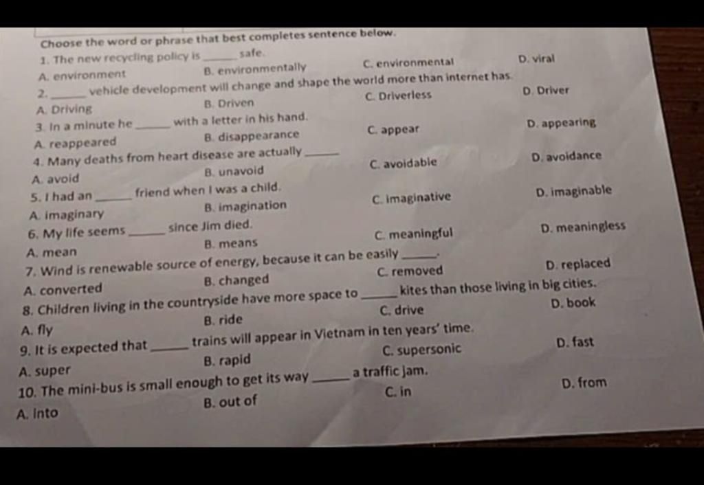 Choose the word or phrase that best completes sentence below.
