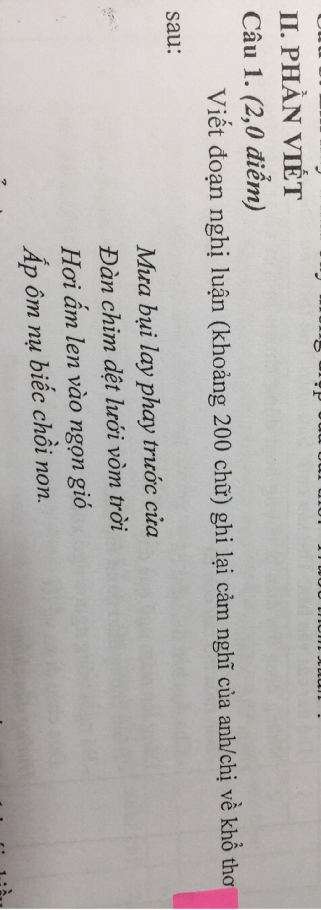 Đoạn thơ "Mưa bụi lay phay trước cửa / Đàn chim dệt lưới vòm trời / Hơi ấm len vào ngọn gió / Ấp ôm nụ biếc chồi non" là một bức tranh thiên nhiên tuyệt đẹp, mang đậm vẻ thanh bình và sức sống mãnh liệt. Từng hình ảnh trong đó không chỉ giản dị mà còn ẩn chứa những tầng ý nghĩa sâu sắc về sự tái sinh, sự hòa quyện giữa thiên nhiên và con người, cũng như là biểu tượng của hy vọng và sự sống vĩnh hằng. Câu thơ mở đầu "Mưa bụi lay phay trước cửa" không chỉ miêu tả một cơn mưa nhẹ nhàng mà còn gợi lên cảm giác của sự chuyển động mềm mại, nhẹ nhàng trong không gian. "Mưa bụi" không phải là cơn mưa mạnh mẽ, mà là những hạt mưa nhỏ, tinh tế, như sự giao thoa của thiên nhiên với con người trong những khoảnh khắc lặng lẽ. Hình ảnh mưa "lay phay" cũng như nhắc nhở chúng ta về sự mong manh, thoáng qua của thời gian, nhưng lại có sức ảnh hưởng sâu sắc đến cảnh vật xung quanh, như thể từng cơn mưa dù nhỏ bé nhưng cũng đủ để làm mới lại đất trời, làm sạch mọi vết bụi bẩn trong cuộc sống. Tiếp theo, "Đàn chim dệt lưới vòm trời" là một hình ảnh vô cùng sống động và giàu tính biểu tượng. Đàn chim không chỉ là sự hiện diện của tự nhiên mà còn là hình ảnh của tự do, của sự sống không ngừng bay lên. Cách mà đàn chim "dệt" nên "lưới vòm trời" vừa cho thấy sự liên kết giữa các sinh vật trong vũ trụ, vừa cho thấy sự sáng tạo không ngừng của tự nhiên. Đàn chim bay lượn giữa trời, nối liền đất và trời như những nhịp điệu của sự sống vĩnh hằng, tạo nên một không gian tràn đầy năng lượng và hy vọng. "Hơi ấm len vào ngọn gió" tiếp tục làm nổi bật sự chuyển mình của thiên nhiên. Hơi ấm không chỉ là sự kết nối của đất trời mà còn là biểu tượng của sự sống, của sự tái sinh sau những mùa đông lạnh giá. Ngọn gió mang hơi ấm ấy như một sự chuyển giao của thời gian, như một dấu hiệu của mùa xuân đến, khởi đầu của những điều mới mẻ và tươi mới. Cảm giác hơi ấm lan tỏa khắp không gian khiến ta cảm nhận được sự dịu dàng, nhẹ nhàng của thiên nhiên, như một lời mời gọi sự sống tiếp tục nảy nở, vươn lên. Cuối cùng, hình ảnh "Ấp ôm nụ biếc chồi non" là một sự kết thúc đầy ấm áp và đầy hy vọng. Nụ biếc và chồi non không chỉ là những biểu tượng của mùa xuân mà còn là dấu hiệu của sự khởi đầu, của sự phát triển không ngừng nghỉ của sự sống. Hình ảnh "Ấp ôm" mang đến cảm giác như thiên nhiên đang che chở, nuôi dưỡng những mầm sống nhỏ bé để chúng vươn mình mạnh mẽ. Đây cũng là một hình ảnh tượng trưng cho sự kiên cường, cho sức mạnh của sự sống dù gặp phải những thử thách, vẫn có thể nảy mầm và phát triển mạnh mẽ trong điều kiện thuận lợi. Từ những hình ảnh thiên nhiên tinh tế, đoạn thơ không chỉ là một bức tranh đẹp mà còn là một thông điệp sâu sắc về sự hòa quyện giữa thiên nhiên và con người, về sự tái sinh không ngừng của cuộc sống. Thiên nhiên, với vẻ đẹp giản dị mà huyền bí của mình, không chỉ là nơi nuôi dưỡng tâm hồn mà còn là nguồn cảm hứng bất tận, thúc đẩy mỗi chúng ta sống một cuộc đời đầy ý nghĩa và hy vọng.
