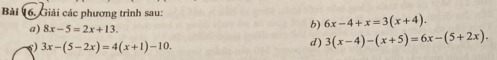 `d) 3(x-4) - (x+5) = 6x - (5+2x)`