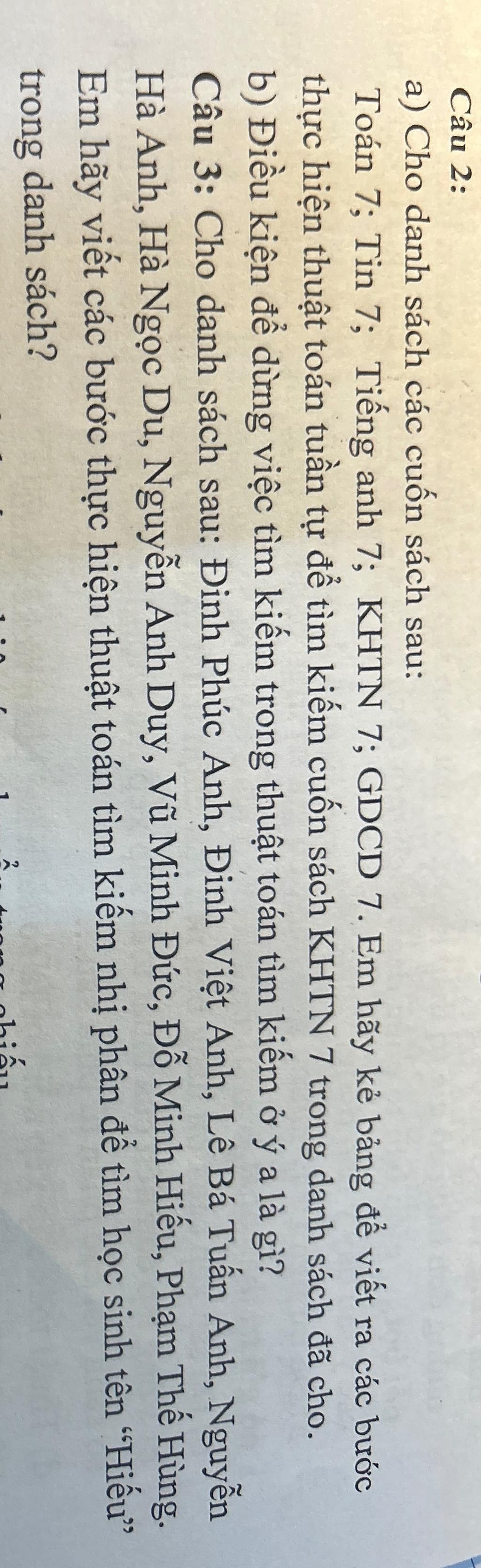 thực hiện thuật toán tuần tự để tìm kiếm cuốn sách KHTN 7 trong danh sách đã cho.