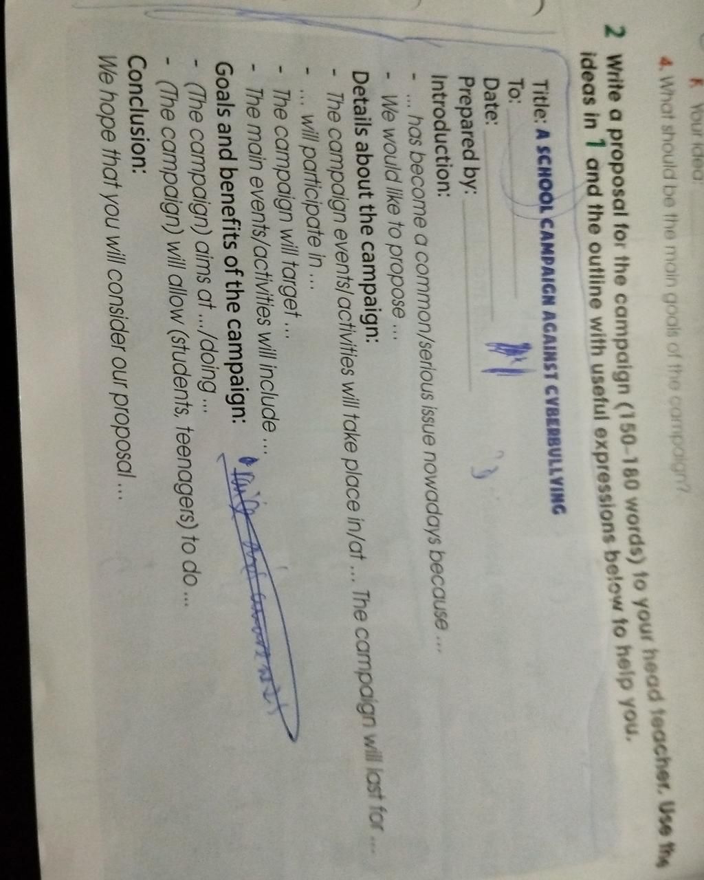 2 Write a proposal for the campaign (150-180 words) to your head teacher. Use the