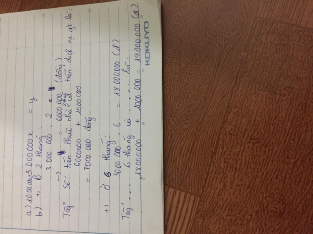 $\text{ y = 1 000 000 + 3 000 000x = 1 000 000 + 3 000 000.6 = 19 000 000 (đồng) }$