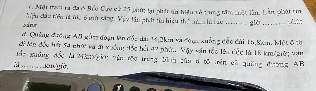 Đổi: 54 phút = 0,9 giờ; 42 phút = 0,7 giờ