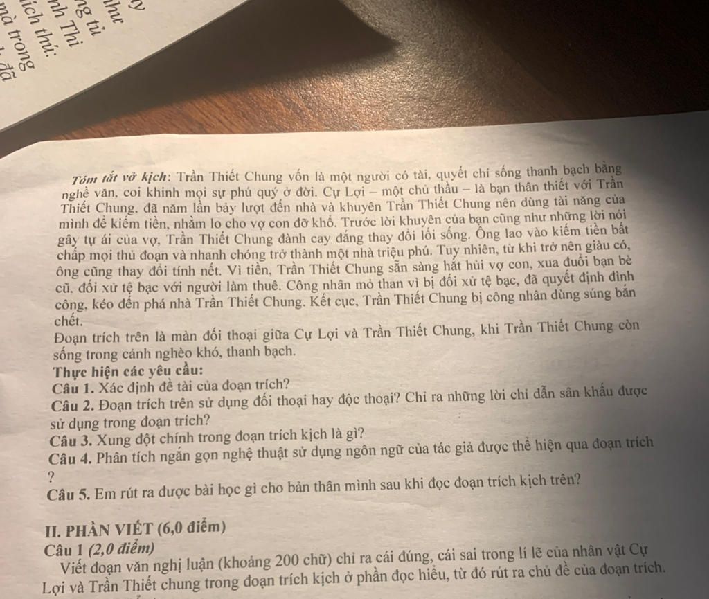 Tóm tắt vở kịch: Trần Thiết Chung vốn là một người có tài, quyết chí sống thanh bạch bằng
