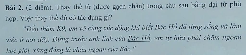 Tác dụng: vừa giúp tránh lặp từ "Bác Hồ" vừa thể hiện được sự gần gũi nhưng vẫn vô cùng trang nghiêm. "Người" được viết hoa để thể hiện sự đặc biệt và thiêng liêng rằng đây không phải là một danh từ chỉ người, con người mà để chỉ một bậc vĩ nhân.