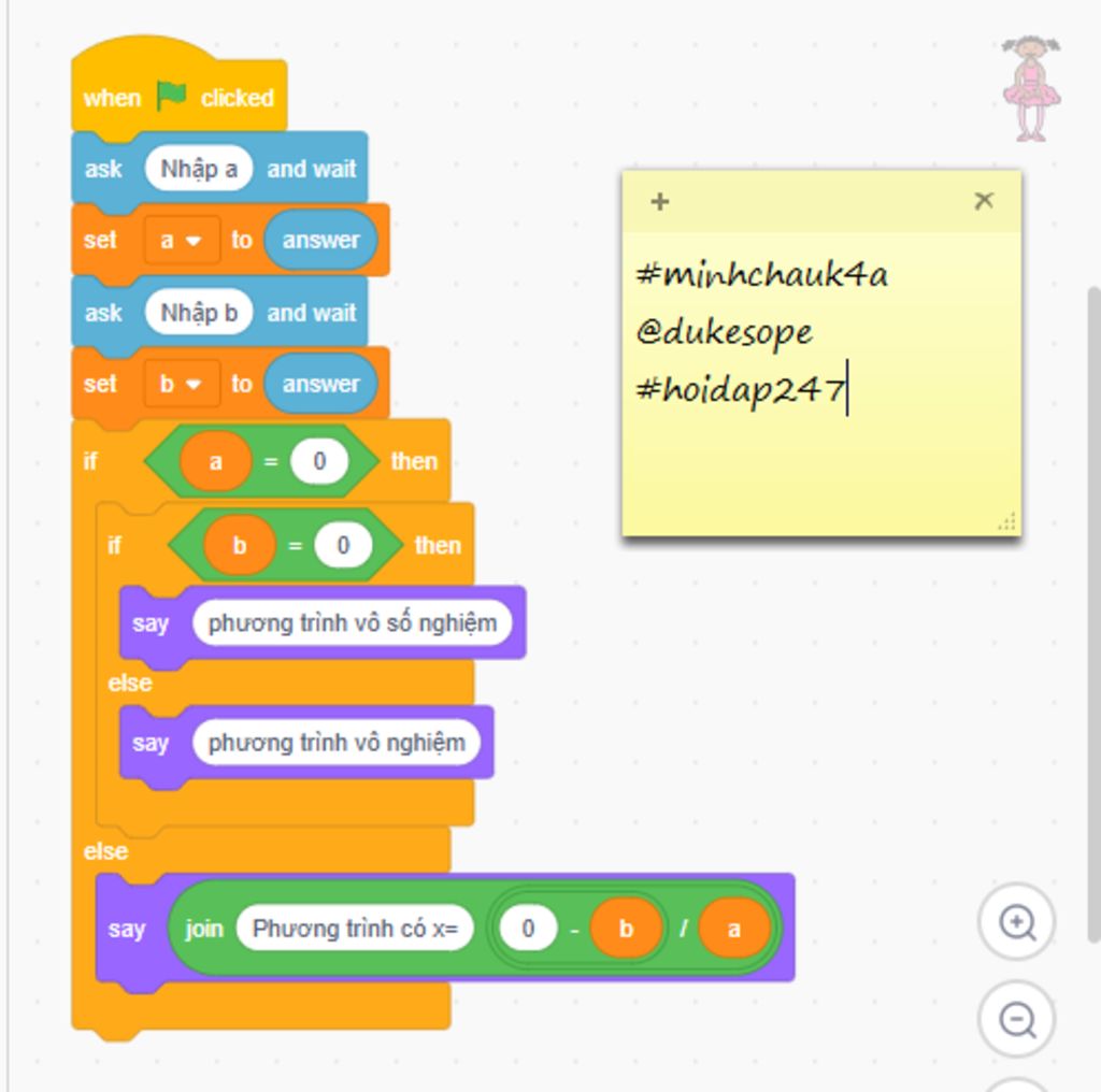 giải phương trình bậc nhất a.x=b=0 (a,b: số nhậm từ bàn phím )