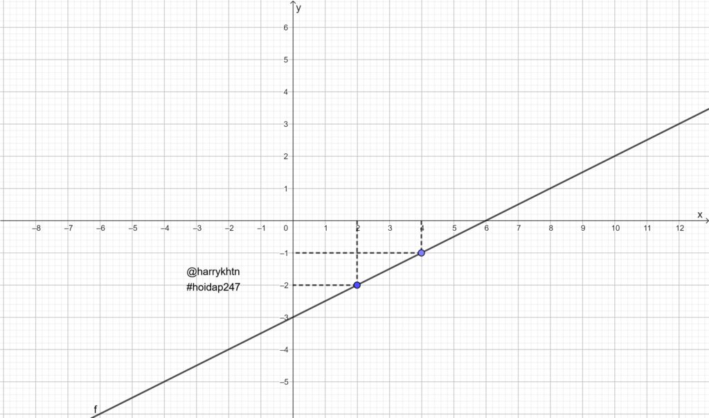 Suy ra: Đồ thị của hàm số `y = f(x) = 1/2x - 3` đi qua hai điểm là `(2;-2)` và `(4; -1)`