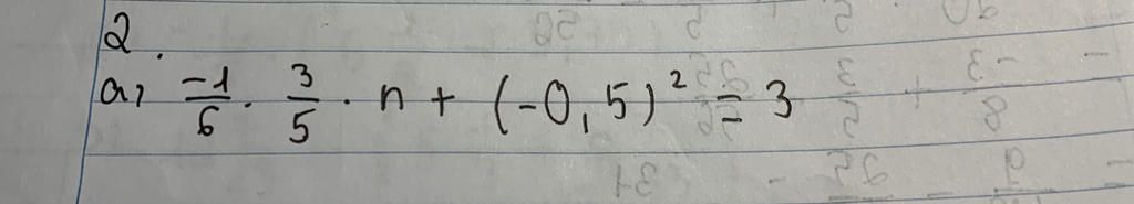 ` - 1/6 . 3/5 . n + (- 0,5 )^2 = 3 `