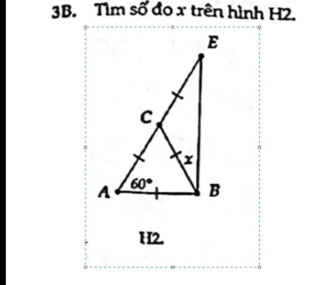 Mà `hat{CBE}=hat{CEB}=>hat{CBE}=hat{CEB}=60^o : 2 = 30^o`