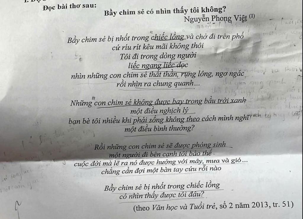 Nguyễn Phong Việt là một trong những nhà thơ đương đại tiêu biểu với phong cách thơ nhẹ nhàng, sâu lắng nhưng đầy trăn trở. Trong bài thơ "Bầy chim sẻ có nhìn thấy tôi không?", tác giả đã khắc họa hình ảnh những con chim sẻ bị nhốt trong lồng để nói lên một ẩn dụ đầy tính nhân sinh. Qua đó, tâm trạng của nhân vật trữ tình dần hiện lên với nhiều cung bậc cảm xúc: xót xa, trăn trở, hoài nghi và cô đơn.
