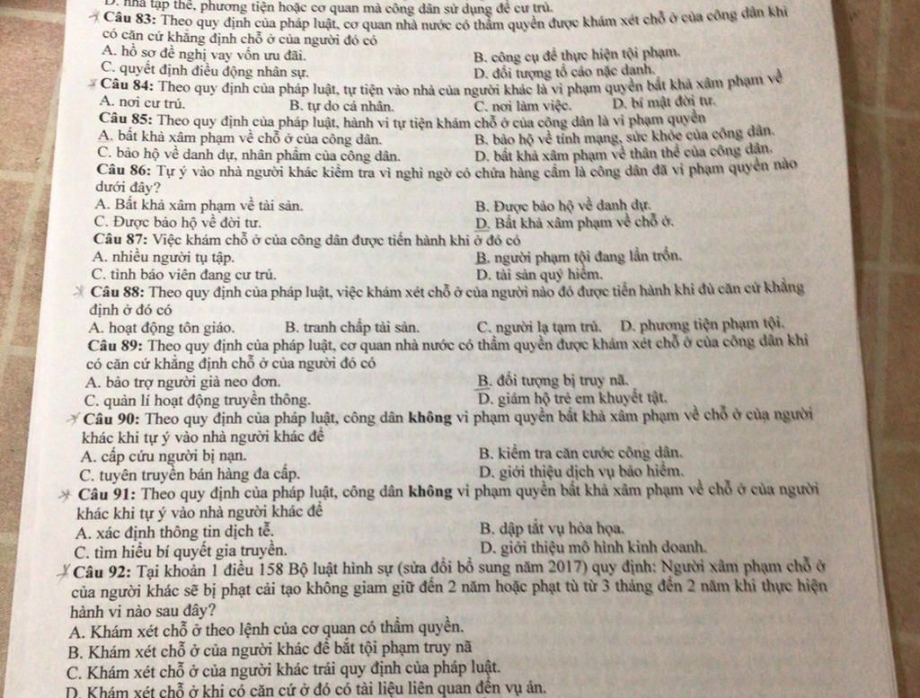 `->` Chỉ cơ quan có thẩm quyền mới được phép khám chỗ ở theo quy định; hành vi tự tiện là vi phạm quyền này