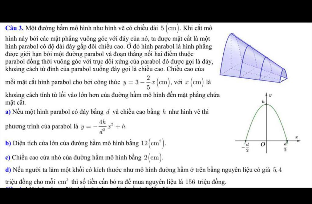 a.Từ đồ thị $\to $Parabol có đỉnh $(0, h)$ hướng xuống và đi qua $(\dfrac{d}2, 0)$