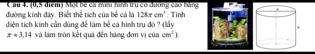 `=> x/2` là bán kính bể cá (do đường cao bằng bán kính đáy)