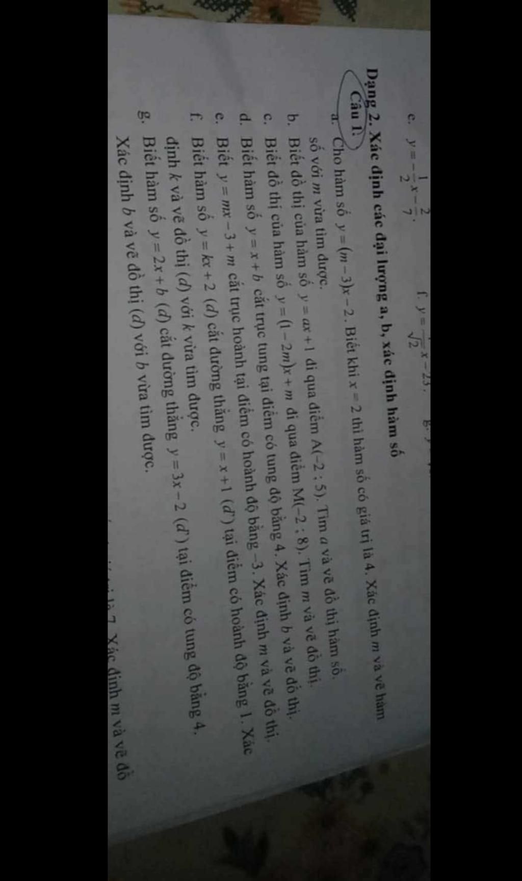a. Cho hàm số y = (m - 3)x − 2 . Biết khi x = 2 thì hàm số có giá trị là 4. Xác định m và về hàm