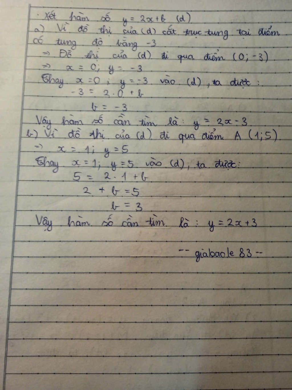 Thay `x = 0` và `y = -3` vào hàm số:
