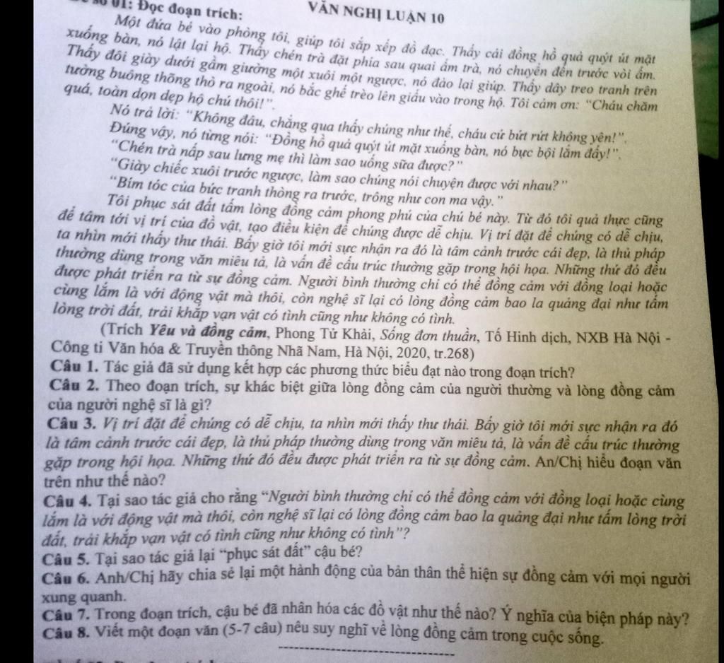 $-$ Đoạn văn trên cho thấy được tầm quan trọng của sự đồng cảm và cái nhìn dưới góc độ nghệ thuật. Đồng cảm không chỉ là sự thấu hiểu giữa người với người mà còn là khả năng cảm nhận và trân trọng những điều vô tri, vô giác. Qua đó, có thể thấy rằng con người cần phải có lòng đồng cảm cùng cái nhìn sâu sắc để có thể hiểu được giá trị tiềm ẩn của mọi vật, biết yêu thương và đối nhân xử thế