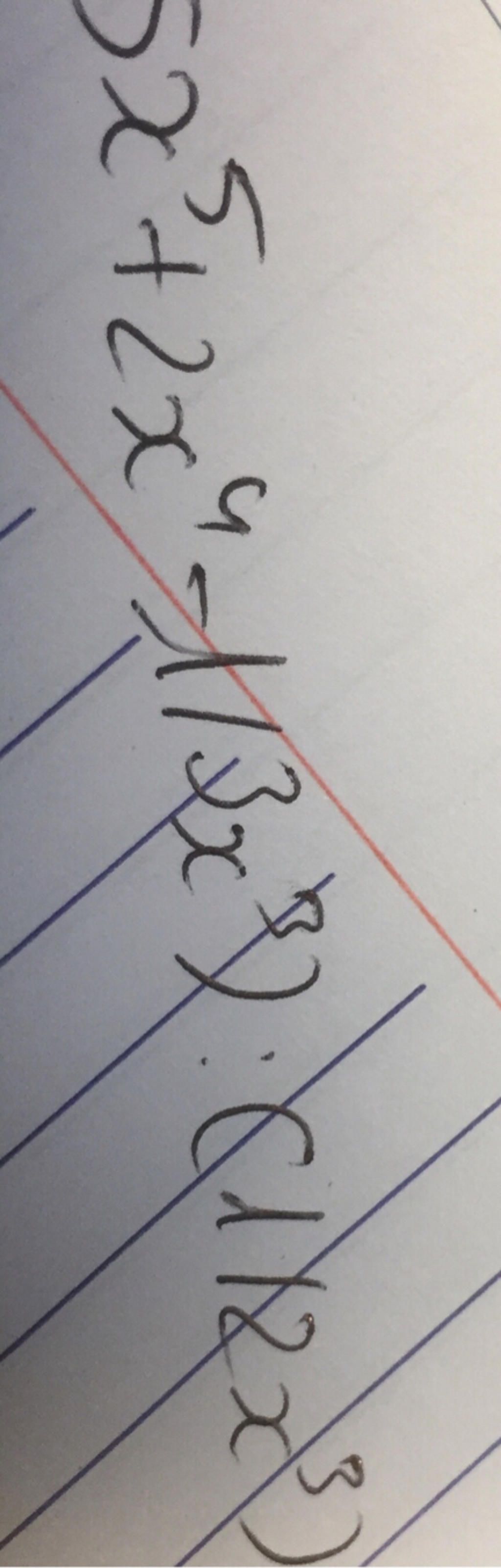 `(5x^5 + 2x^4 - 1/3x^3) : (1/2x^3)`