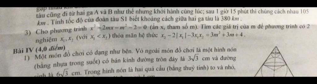 3) Cho phương trình x−2mx−m – 2 – 0 (ần x, tham số m). Tìm các giá trị của m để phương trình c ...