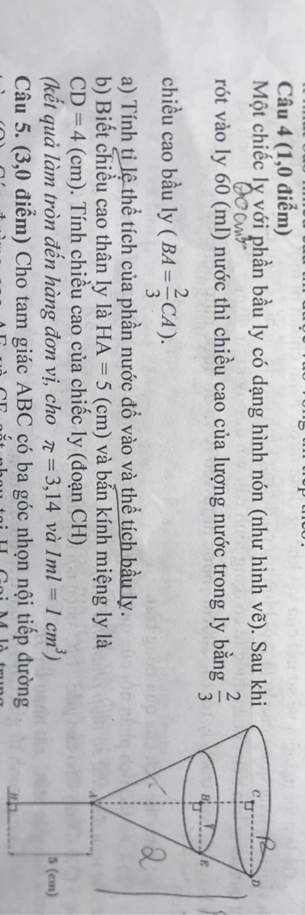 Một chiếc ly với phần bầu ly có dạng hình nón (như hình vẽ). Sau khi
