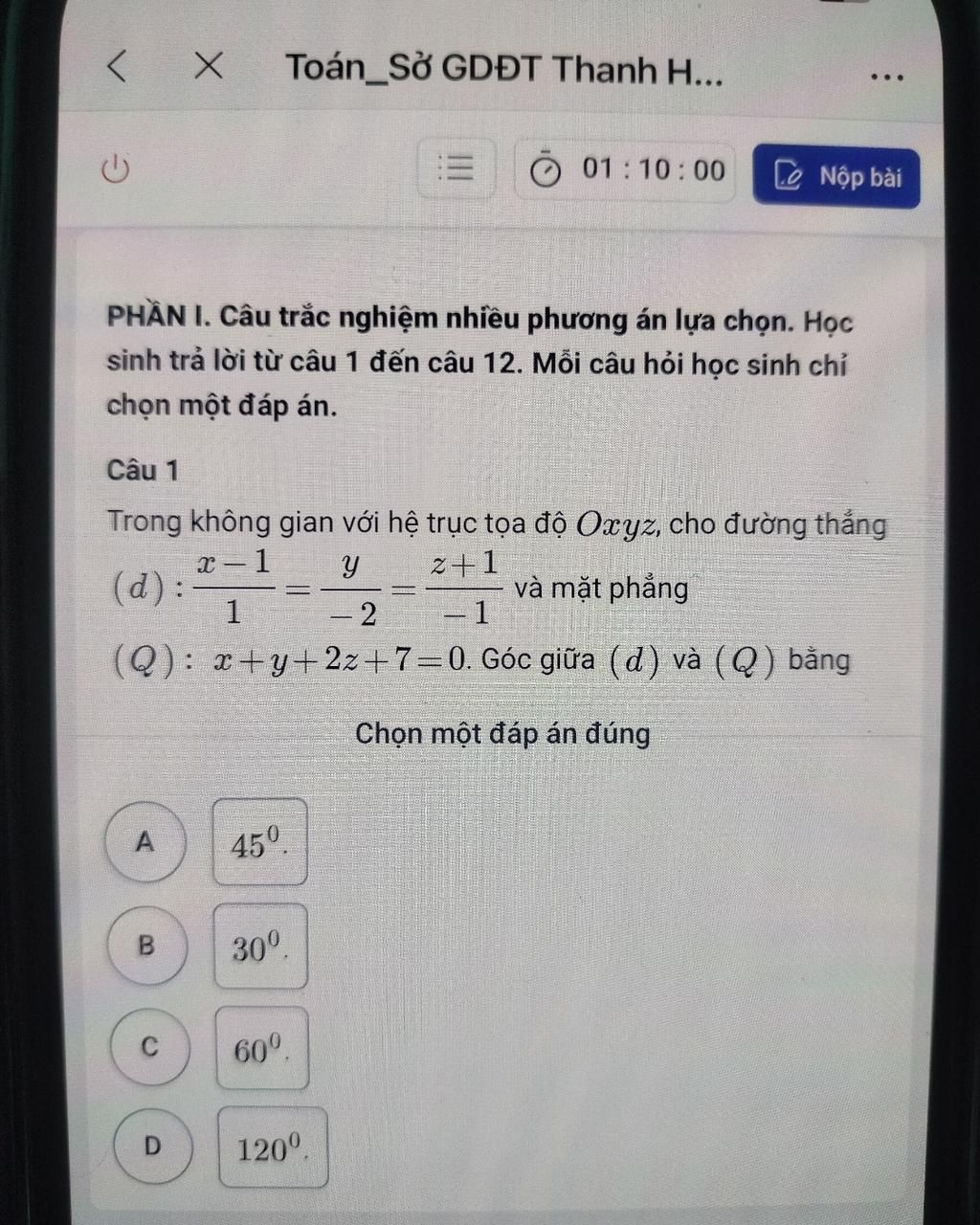 sinh trả lời từ câu 1 đến câu 12. Mỗi câu hỏi học sinh chỉ