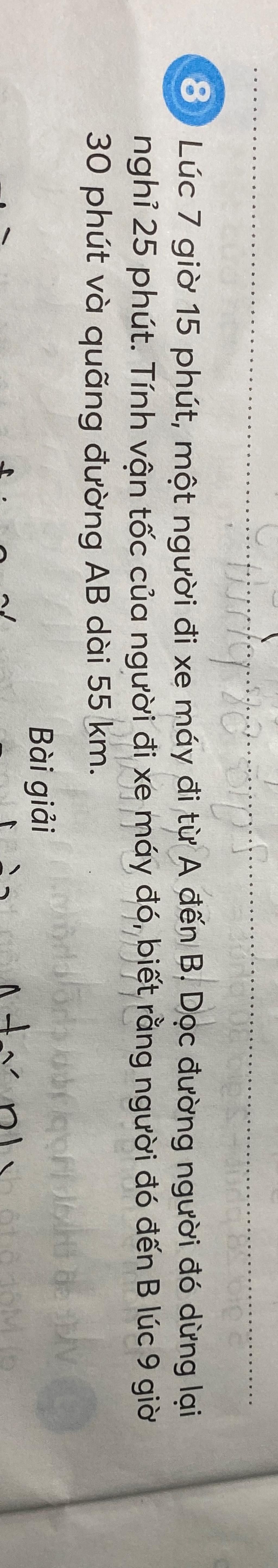 `(9` giờ `30` phút `-7` giờ `15` phút ) `-25` phút `=1` giờ `50` phút `=11/6` giờ