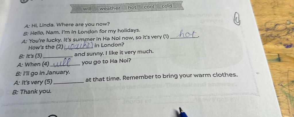 ⇒ Dựa vào "sunny" ( có nắng) → ấm