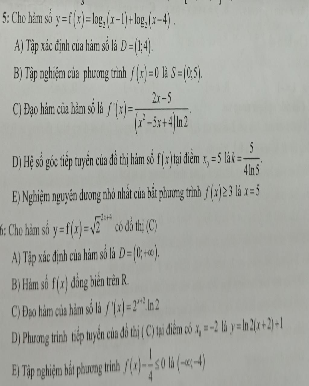 5: Cho hàm số y=f(x)=log,(x-1)+log (x-4).