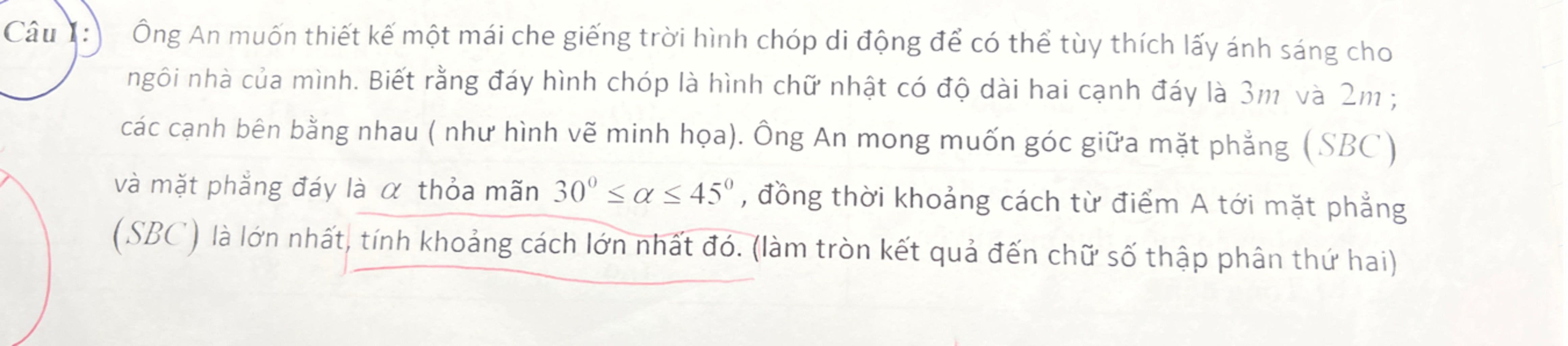 Để $d(A, SBC)$ lớn nhất