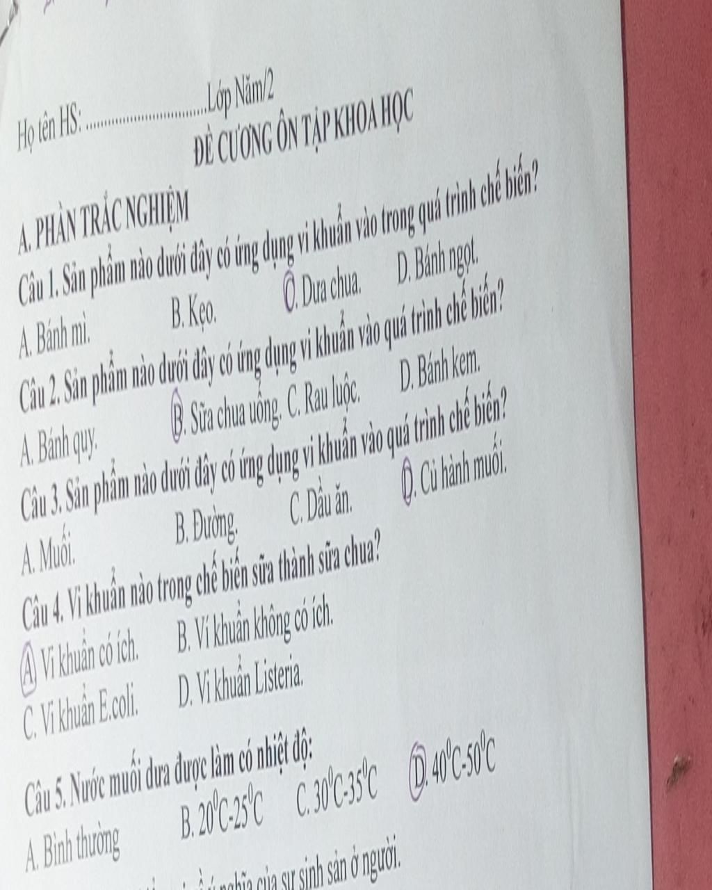 `@` B. Vi khuẩn không có ích `to` sai vì vi khuẩn làm sữa chua là lợi khuẩn.