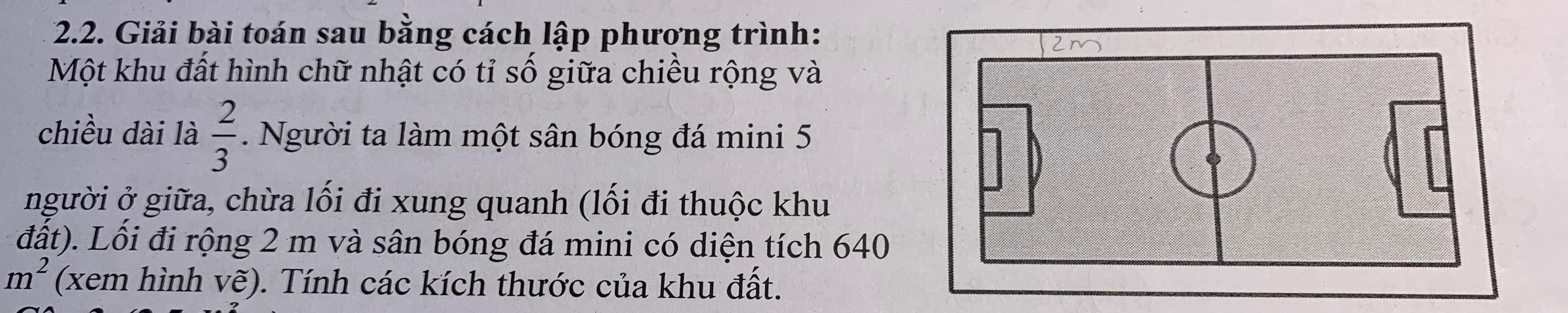$\to$Chiều dài là $36,$ chiều rộng là $\dfrac23\cdot 36=24$ m