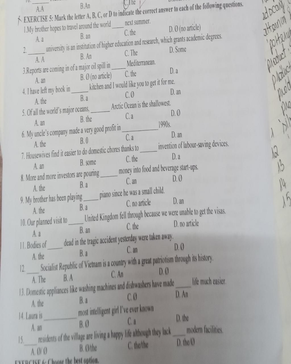 EXERCISE 5: Mark the letter A, B, C, or D to indicate the correct answer to each of the following questions.