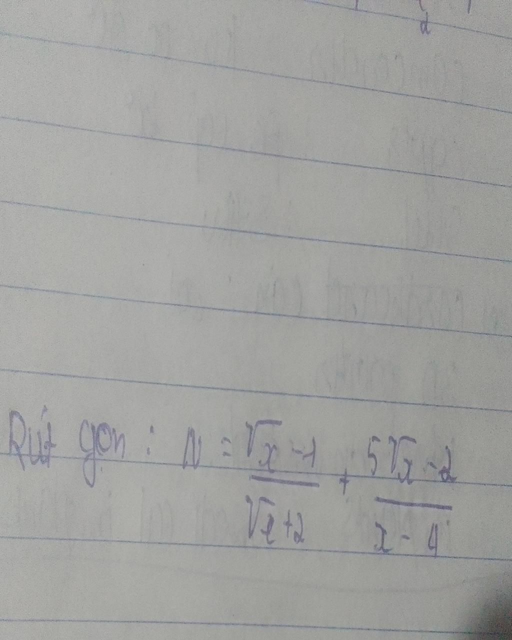 `N`= $\frac{\sqrt{x} -1}{\sqrt{x} +2}$ + $\frac{5\sqrt{x} -2}{(\sqrt{x} -2)(\sqrt{x} +2)}$