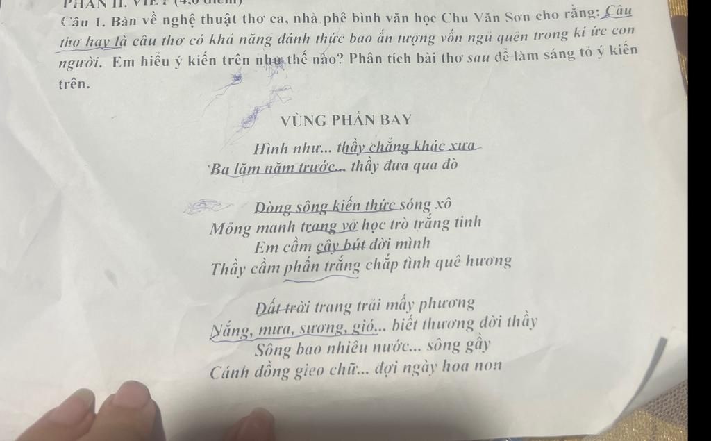 Câu 1. Bàn về nghệ thuật thơ ca, nhà phê bình văn học Chu Va Sơn cho rằng: Câu