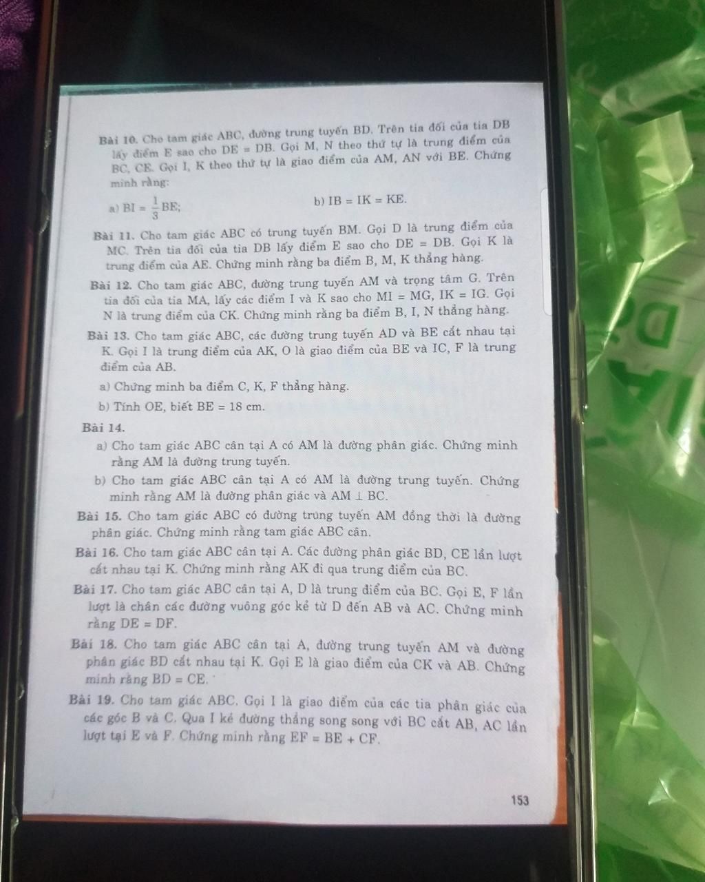 Bài 10. Cho tam giác ABC, đường trung tuyến BD. Trên tia đối của tia DB