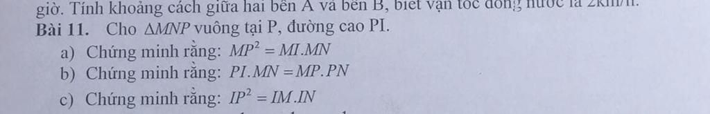 Bài 11. Cho AMNP vuông tại P, đường cao PI.