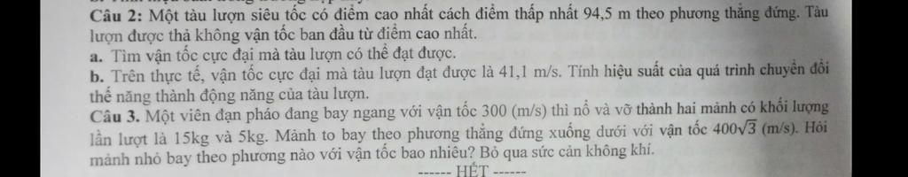 `H=[W_đ (text[thucte])]/[W_đ (max)]=[1/2mv'^2]/[1/2mv^2]=[v'^2]/[v^2]=[41.1^2]/[43.47^2]~~0.89=89%`