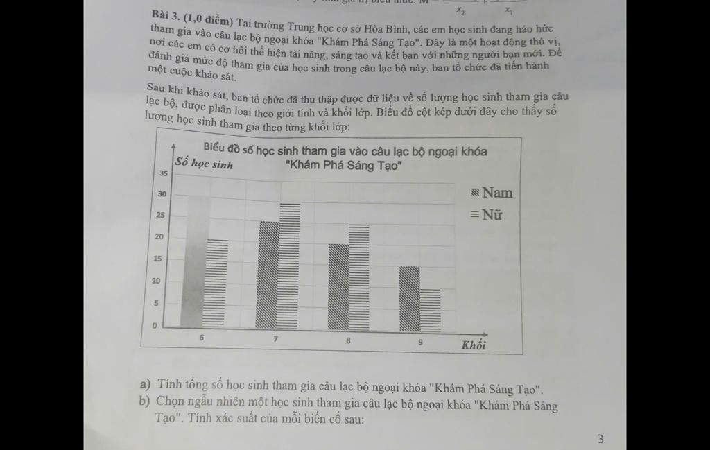 Bài 3. (1,0 điểm) Tại trường Trung học cơ sở Hòa Bình, các em học sinh đang háo hức