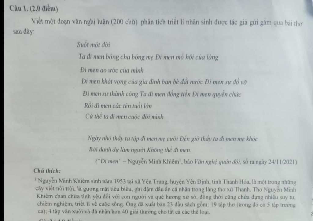 Viết một đoạn văn nghị luận (200 chữ) phân tích triết lí nhân sinh được tác giả gửi gắm qua bài thơ