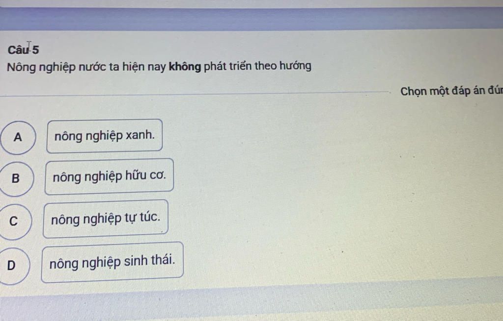 `C.` nông nghiệp tự túc.