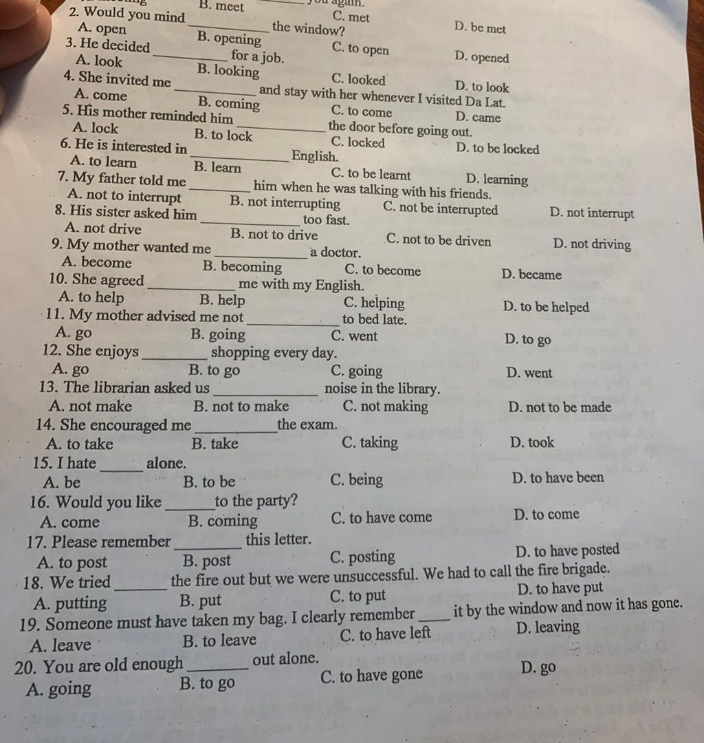 Giải thích: Would you mind + V-ing (lời đề nghị lịch sự).