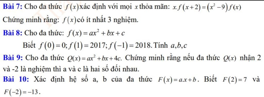 Bài 7: Cho đa thức f(x)xác định với mọi x thỏa mãn: x.f(x+2)=(x–9)f(x)